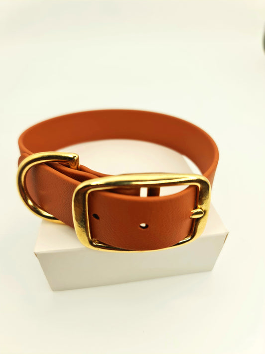 Réalisés en sangle TPU type Biothane, ils sont résistants à l’eau, faciles d’entretien et extrêmement robustes, même face aux tractions répétées. Leur bouclerie en laiton ou inox massif garantit sécurité et longévité, tout en apportant une touche chic à l’accessoire.