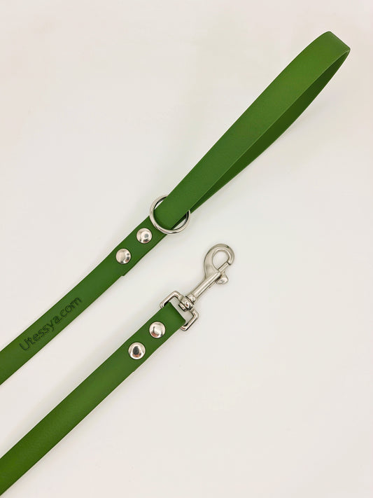 Réalisées en sangle TPU type Biothane, elles sont imperméables, faciles d’entretien et résistantes à l’usure. Leur bouclerie en laiton ou inox massif assure une fiabilité optimale, tandis que l’anneau libre sur la poignée rend vos sorties encore plus pratiques.