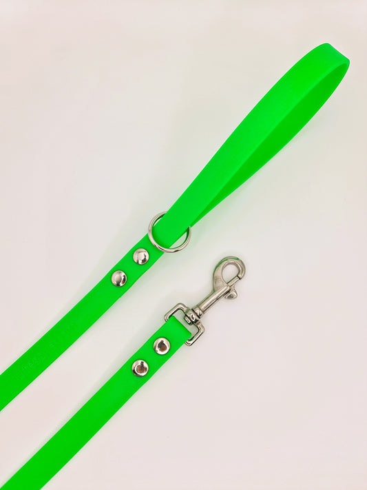 Réalisées en sangle TPU type Biothane, elles sont imperméables, faciles d’entretien et résistantes à l’usure. Leur bouclerie en laiton ou inox massif assure une fiabilité optimale, tandis que l’anneau libre sur la poignée rend vos sorties encore plus pratiques.