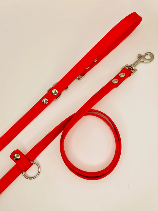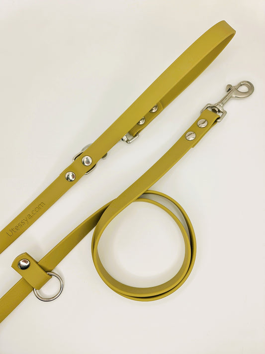 Nos laisses sont fabriquées en sangle TPU type Biothane, un matériau robuste, souple, imperméable et facile à entretenir. Chaque modèle est équipé d'une bouclerie haut de gamme en inox ou laiton massif, pour garantir sécurité et durabilité.