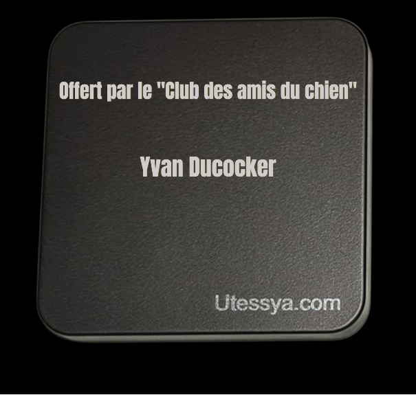Nous vous offrons la possibilité d'une gravure personnalisée du couvercle sur 1 ou 2 lignes comme dans l'exemple en photo [la teinte de gravure sera métallique comme Utessya.com]. Vous pouvez aussi ne pas prendre la gravure.