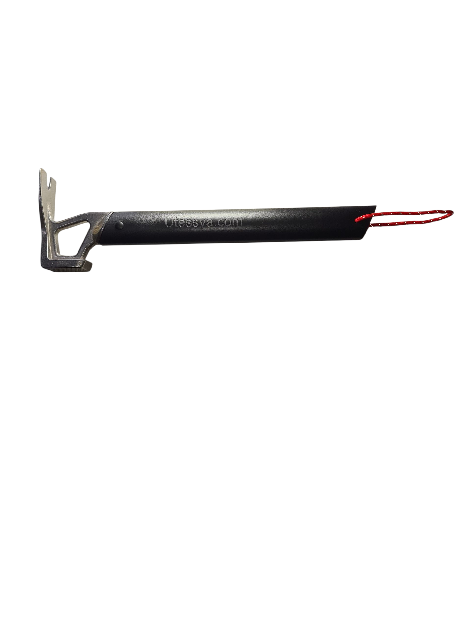 Son bec est spécialement étudié pour les piquets Utessya à têtes larges. Il évite ainsi d'endommager les sangles en voulant tirer les piquets avec celle ci, au risque de faire craquer les coutures, tout cela sans forcer et sans trop se baisser.