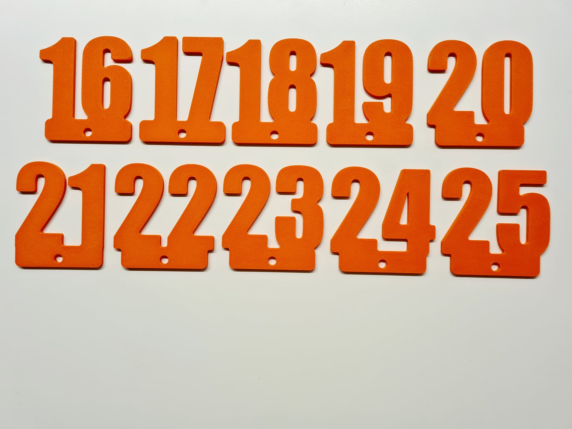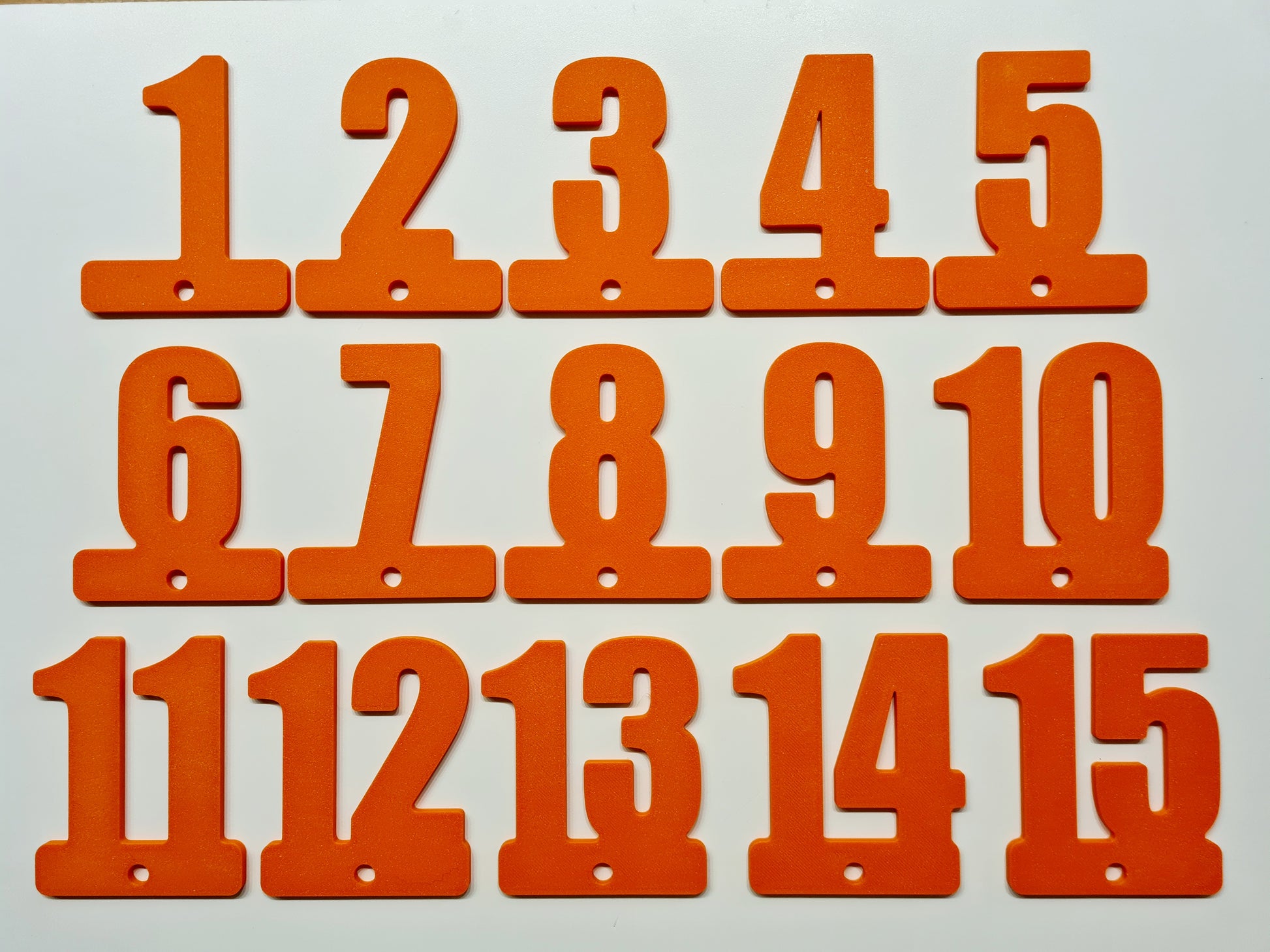 Notre Kit luxe de numéros et lettres de parcours Hooper's est composé de 25 numéros, des lettres D et A ainsi que de leur support de rangement pratique.